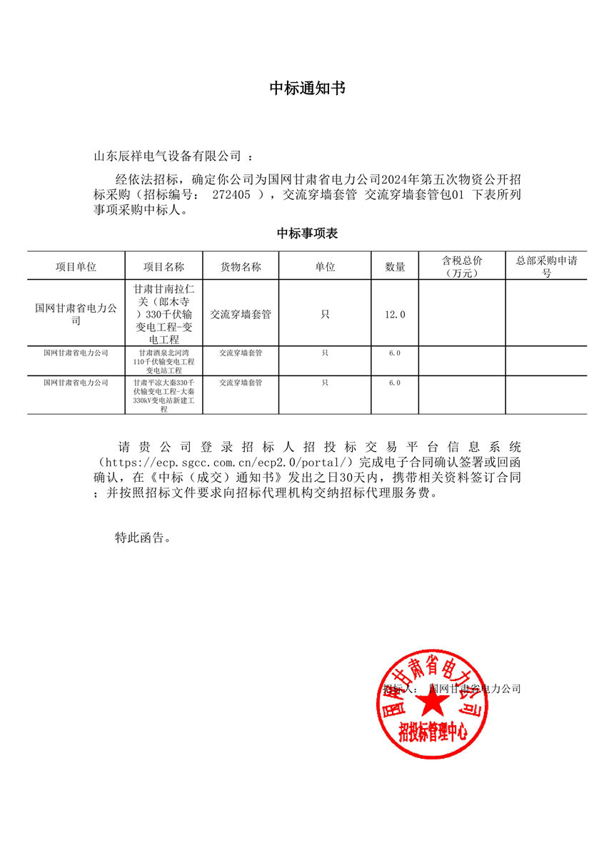 2024.05.30 交流穿墻套管中標通知書